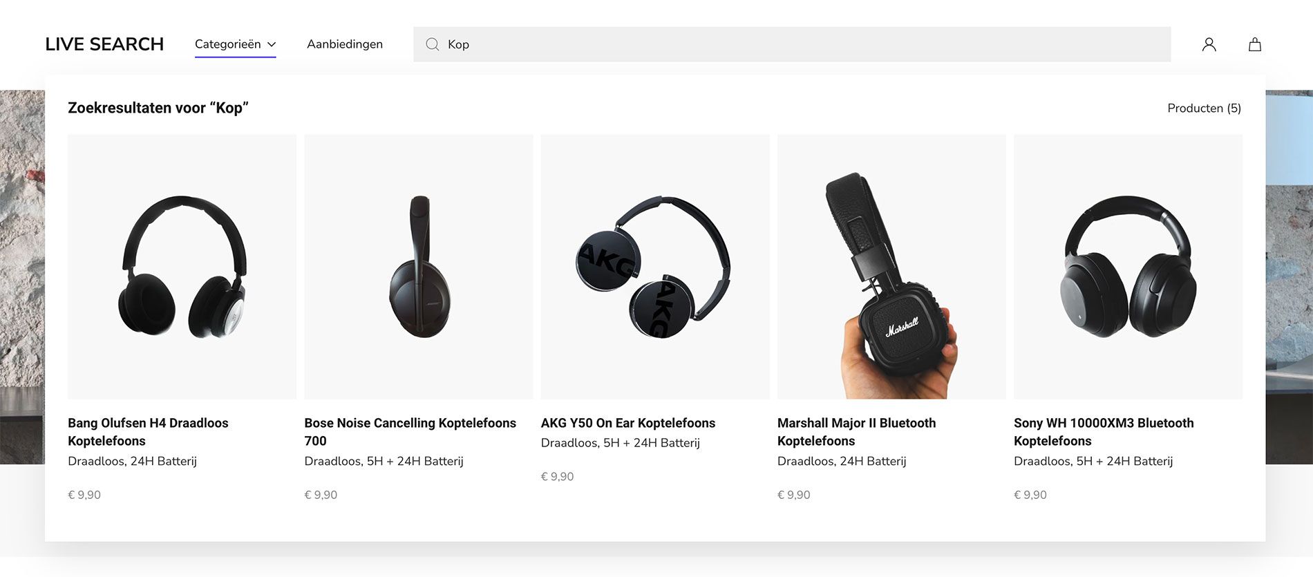 Met extra filters, zoals prijsklassen, beoordelingen en productcategorieën, kunnen gebruikers hun zoekopdracht verfijnen en sneller precies vinden wat ze nodig hebben. Deze real-time zoekervaring draagt niet alleen bij aan klanttevredenheid, maar kan ook de conversiepercentages verhogen doordat gebruikers eenvoudiger producten ontdekken.